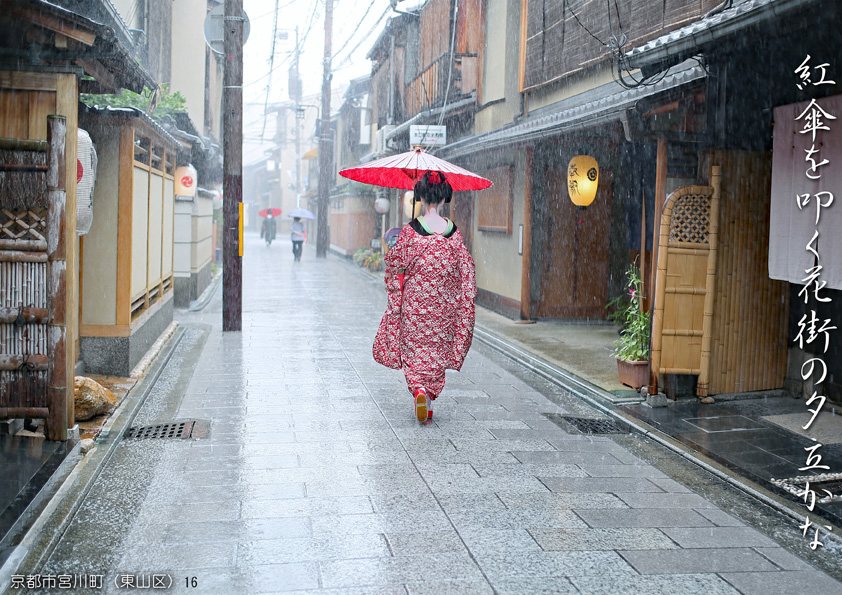 紅傘を叩く花街の夕立かな