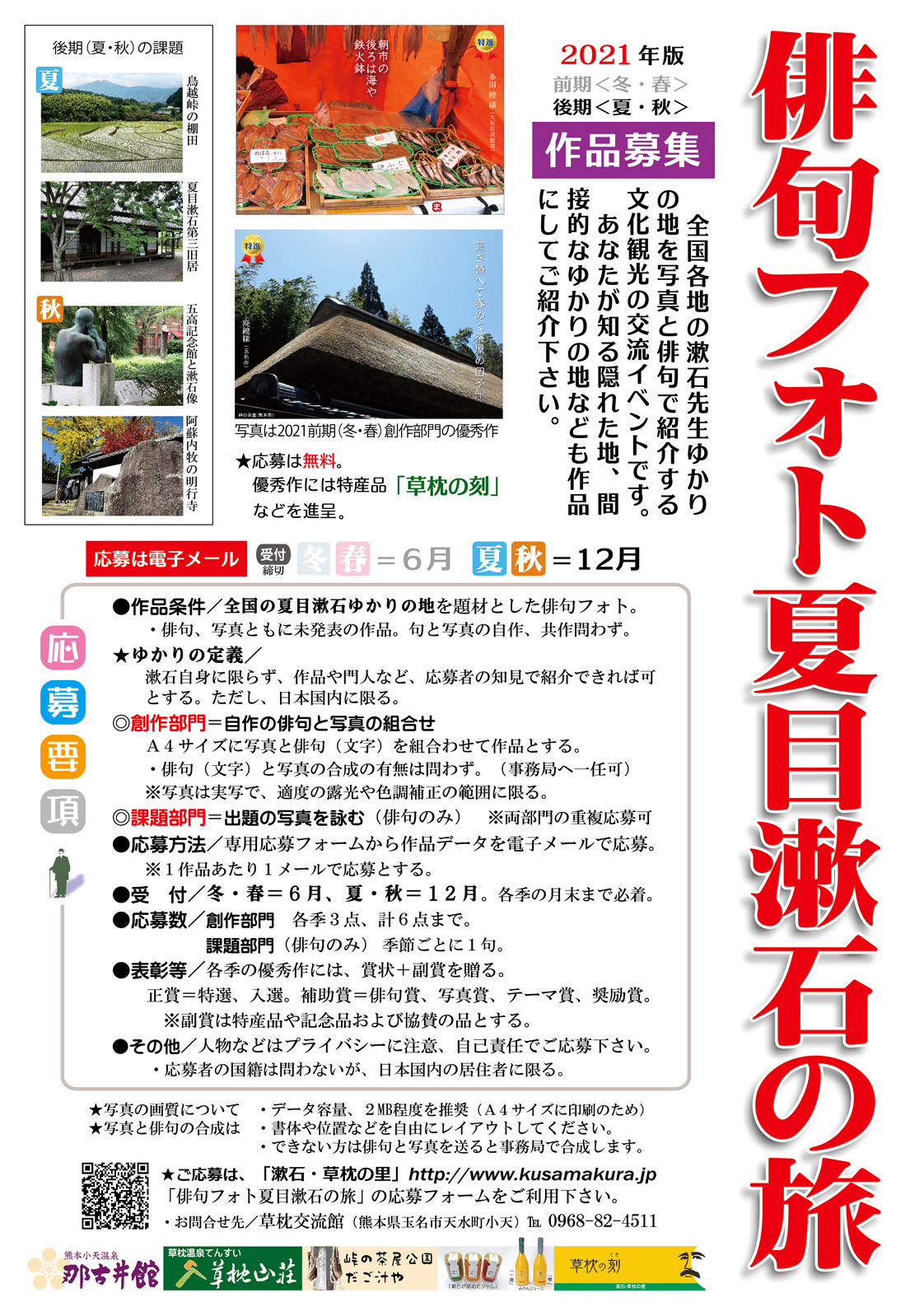全国各地の漱石先生ゆかりの地を写真俳句で紹介してください。投稿は無料です。