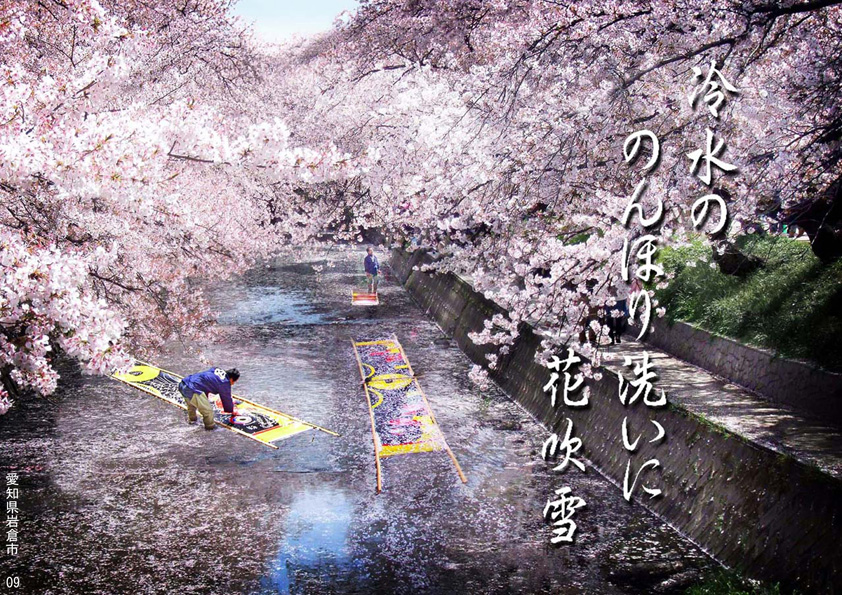 冷水ののんぼり洗いに花吹雪