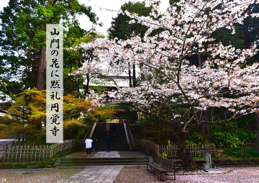 山門の花に黙礼円覚寺