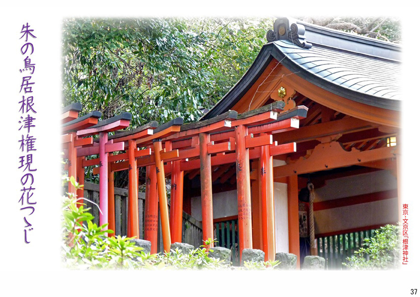 朱の鳥居根津権現の花つゝじ