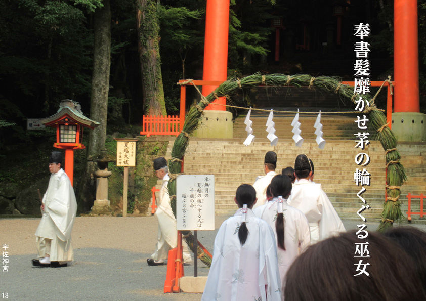 奉書髪靡かせ茅の輪くぐる巫女