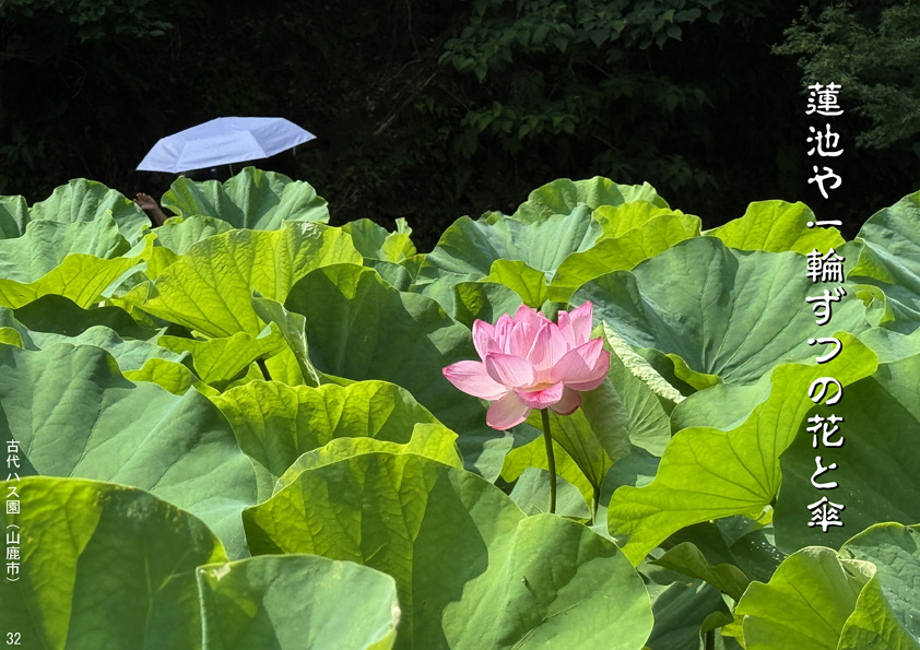 蓮池や一輪ずつの花と傘