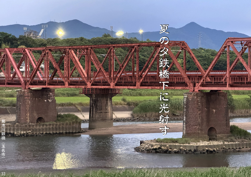 夏の夕鉄橋下に光射す